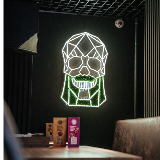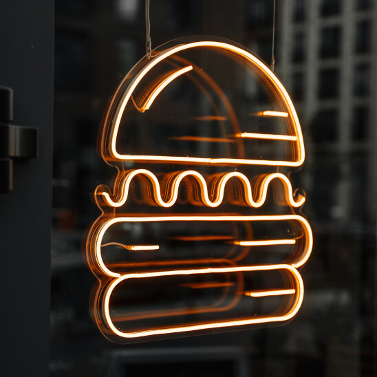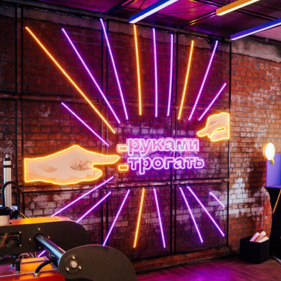 Плюсы: с помощью стеклянного неона можно создать эффект винтажности. Такие вывески хорошо сочетаются практически с любым интерьером.