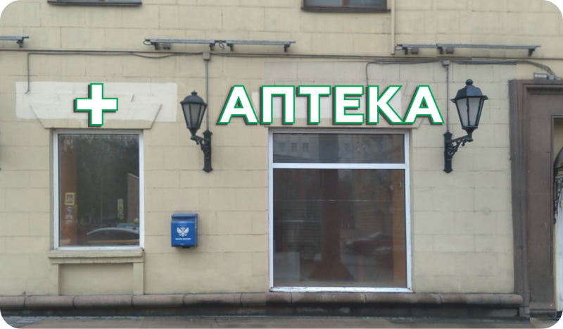 Пока всё понятно: использовать названия АПТЕКА или АПТЕЧНЫЙ ПУНКТ, в ночное время организовать подсветку, разместить информацию о режиме работы. Однако, вариантов вывесок очень много и пока не очень понятно, какие лучше использовать для аптек.