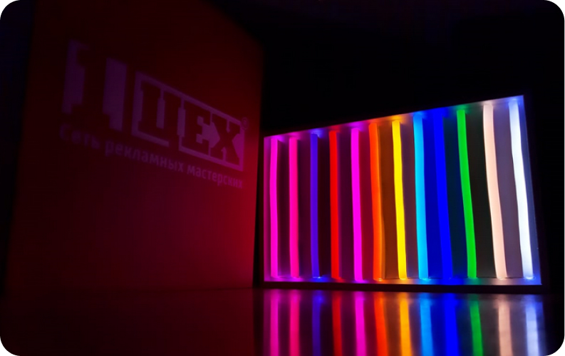 Да, лицевая подсветка является самой яркой, и в большинстве случаев хватит и ее. Но что делать есть в логотипе содержатся темные цвета, которые считываются человеческим глазом не так хорошо? Как, например, синий, бордовый, или черный, который вообще светиться не может.