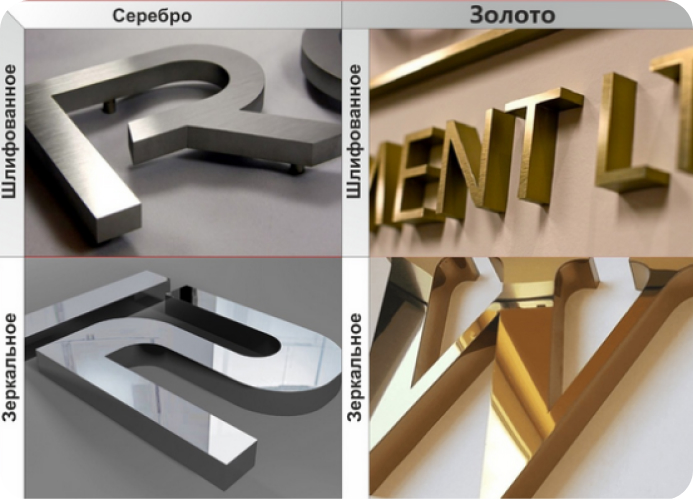 Вы можете выбрать из четырех стандартных текстур нержавеющей стали: золото или серебро, зеркальная или шлифованная поверхность.